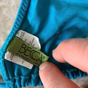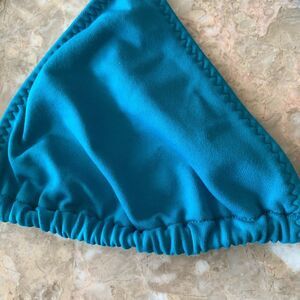 Becca by Rebecca Virtue aquamarine swim top, classic triangle style, with thin straps that tie around the neck and back. Used a couple of times, excellent condition, size XS. Mix and match with other pieces
