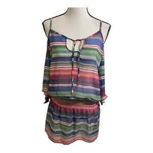 Becca cold shoulder swim striped cover up elastic at waist. Beach cover. Size X-Small