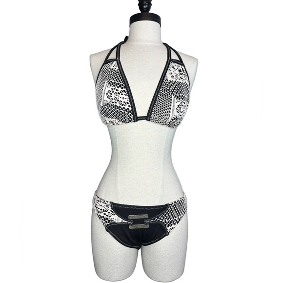 Becca crochet overlay two piece bikini with hardware detail size M