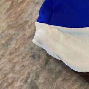 Becca navy striped bikini bottom size medium. Small marks on the white trim part on the back. Pictured.