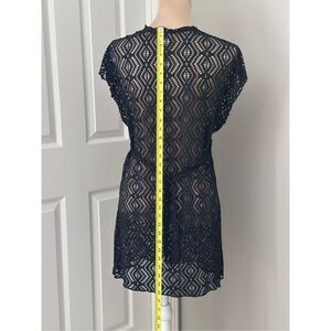 Very cute Becca by Rebecca Virtue black mesh swimsuit coverup in Size XS. Black, deep v-neck, adjustable tie around the waist to get the fit u want. See pics for measurements and condition.