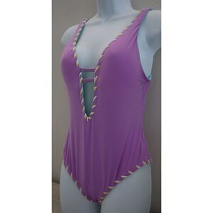 Becca x Rebecca Virtue Sz S Purple/Teal Skylar Plunge Reversible 1-Pc Swimsuit