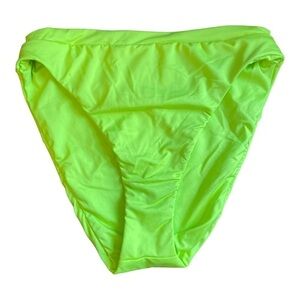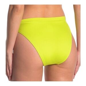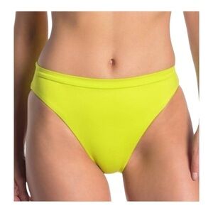Becca - Banded high waist bikini bottom with high leg cut, offers moderate coverage. Neon green/yellow
