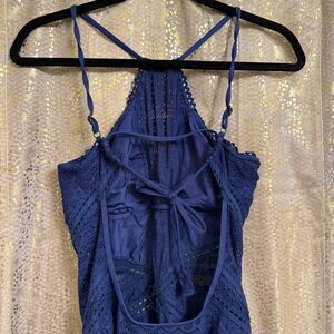 Becca Navy Blue Prairie Rose One Piece Crochet Halter Neck Swimsuit XL
