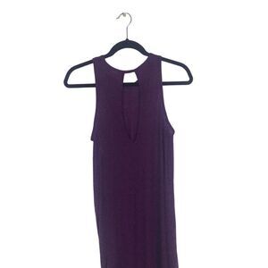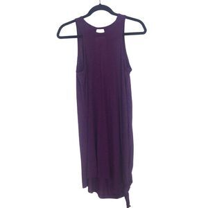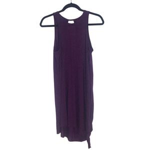Burgundy sundress or cover up in cotton polyester. Large opening at the neck in the back and knot on the left side at the hem line.