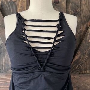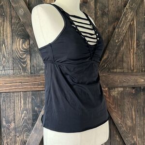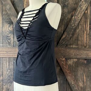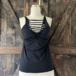 Becca Twist & Turns Tankini Removable Soft cups Twist and Turns cut out Front Adjustable Straps 83% Nylon, 17% Spandex SKU: 859567 , great condition Tankini top only