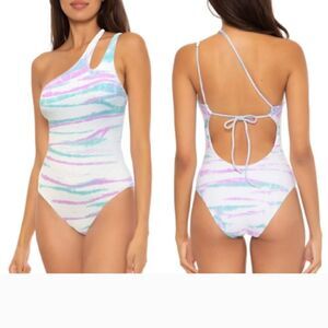 Becca green purple & white tie dye 1 shoulder 1 piece swimsuit size NWT