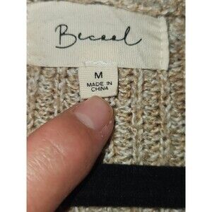 Beceel Women's Size Medium Hooded Beige Open Cardigan With Pockets