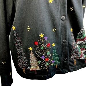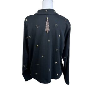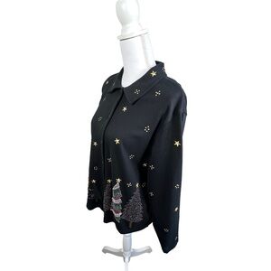 Bechamel Button Down Christmas Tree embroidered long sleeve Blouse Black Size L