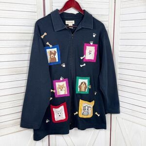 Dogs Puppy Grandma Colorful Casual Office Vintage 90s Athleisure Sweater Jacket