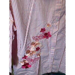 Bechamel Pink White Striped Floral Embroidered 3/4 Sleeve Button Up Top Sz XL