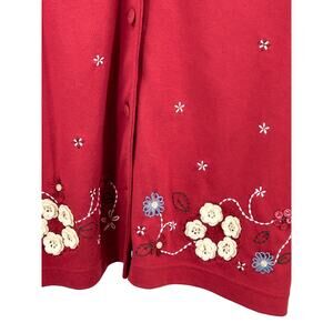 Bechamel Red Embroidered Knit Cardigan Floral Size Xlarge