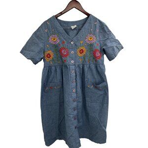 Bechamel Shirt Dress Button Down Embroidered Chambray Denim Size PL Pockets