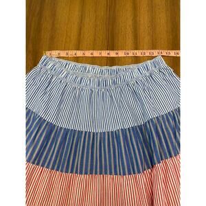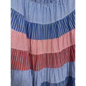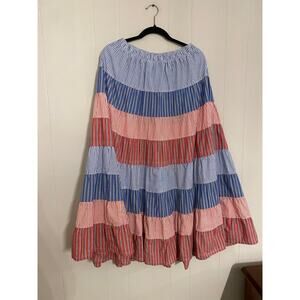 Bechamel Tiered 100% Cotton Red Blue Striped Maxi Skirt Large Cottage Boho Lagen