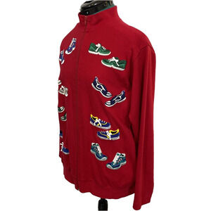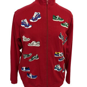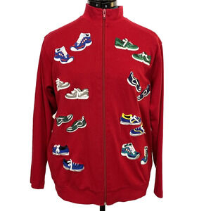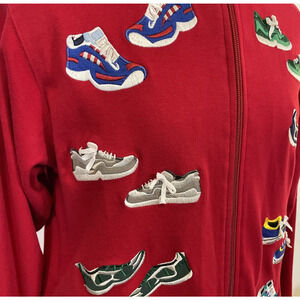 Bechamel Vintage Sneaker Applique Jacket Full Zip Embroidered Red Size Small