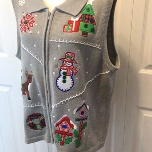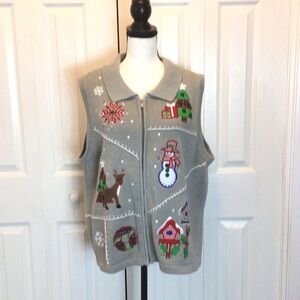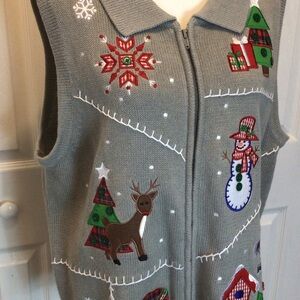 Bechamel Woman Gray Christmas Snowman Holiday Vest Size 1X