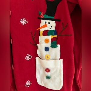 Bechamel Womens Red Snowman Button Up Cardigan Sweater/Shirt Sz XL 100% Cotton