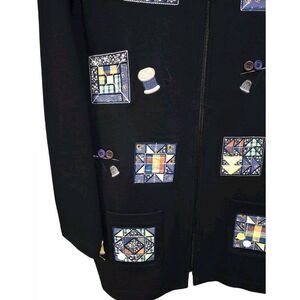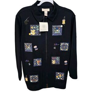 Bechamel Womens Size Medium Vintage Embroidered Patchwork Cardigan Sweater Black Zip Up