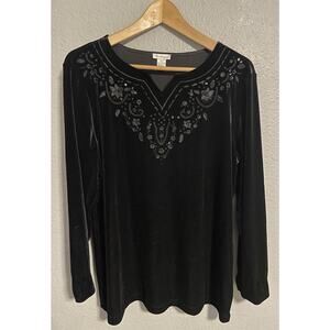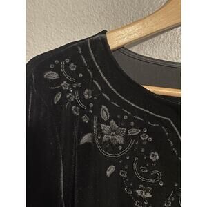 Bechamel Womens Top Large Black Floral Embroidered Velvet Whimsigoth Witchy Y2K