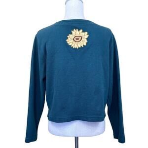 Bechamel green cardigan w/sunflowers, vintage, whimsical, cozy, wacky, prairie