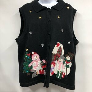 Bechamel women’s xl holiday button up vest ugly Christmas sweater festive knit