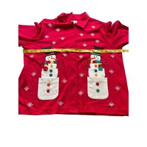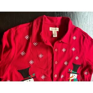 Bechamel-LRG Front button collar blouse- Cotton- Snowman Design- hot red winter