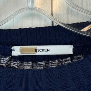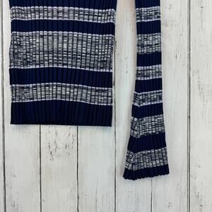Becken Blue/Grey Striped Ribbed Crewneck Flare Long Sleeve Sweater Size XS