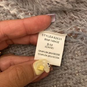 Size small/medium. Super soft!! Super cozy!! Just too big for me. Two big pockets. This style does not button - buttons are just for show.