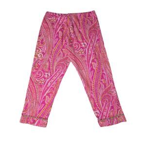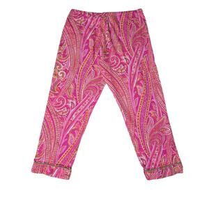 Bed Head Cropped Pajama Pants M Pink & Green Paisley PJ Bottoms 100% Cotton