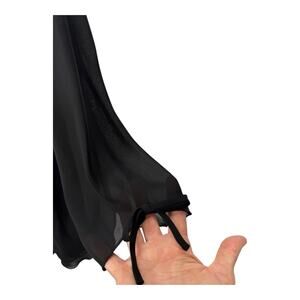 Bed Of Roses Sheer Black Nightie Robe w/ tie mid-chest. Lace shawl collar. Sheer kimono sleeves with ties on end for subtle detailing. T Women’s M Please check all measurements in photos. Laundering and Dry Cleaning can alter garment from manufacturer specifications.
