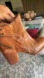 Handmade ankle boots featuring a vegetable-tanned leather upper with whipstitch detailing.