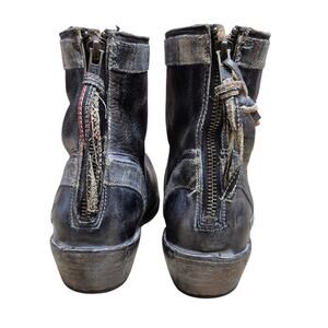 Bed Stu Black Binary Rear Zip Bench Made Distressed Leather Ankle Boots Size 9