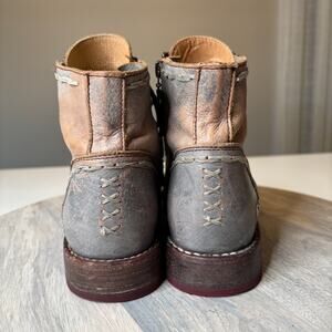 Bed Stu Bonnie Gray Brown Distressed Leather Lace Up Zip Ankle Boots Women’s 9.5