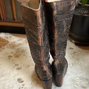 Bed Stu Brown Woven Leather Wedges