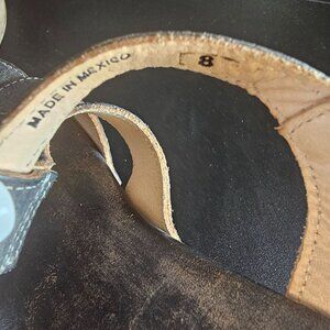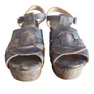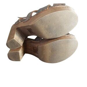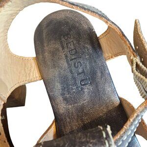 Bed Stu Caitlin F376002 Womens Brown Leather Hook & Loop Heeled Sandals Shoes