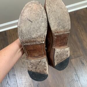 Size 7.5. Heel height 1 1/4 inches. These boots are gorgeous!! Light wear. Great condition!!!!