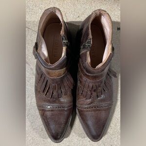 Bed Stu Cobbler Organic Leather “Dipper” Distressed Ankle Boots w/Fringe, Size 8