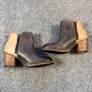 Bed Stu Cobbler Two Tone Leather Boots Ankle Booties Gray Tan Womens 9