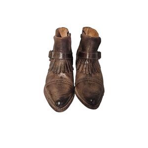 Bed Stu Dipper Cobbler Brown Leather Belted Ankle Boots Womens 7