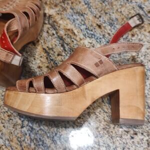 Bed Stu Fontella Heeled Platform Sandal Leather Tan Rustic Women's Size 7
