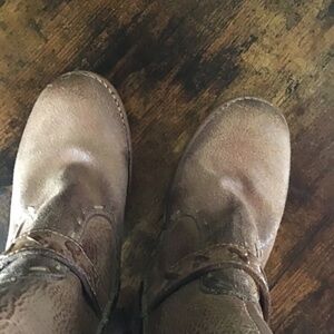 Love! Love! Love! Super hot 8” ankle boots by Bed Stu. These boots are a gorgeous, caramel meets light brown color which matches everything. Excellent craftsmanship that you expect from a quality bootmaker. Buckle accents at top of shaft, Detailed cross stitching on harness, purrrrrfect chunky heel and round toe. I’ve hesitated to sell these because of the look and actual comfort. Due to ankle surgery, I just can’t wear them. Heartbreaking as it is, I have to let them go.