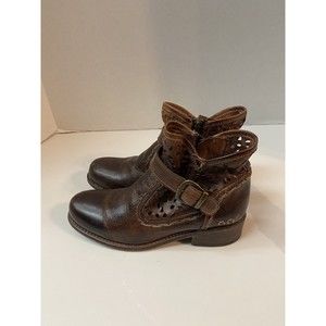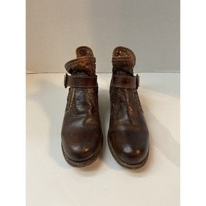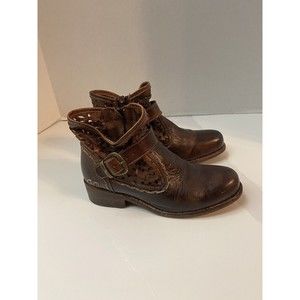 Bed Stu Heather Leather Ankle Booties Brown Buckle Size 7.5