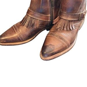 Bed Stu Leather Dipper Ankle Bootie Rust Fringe Size 6