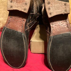 Hand crafted, Genuine leather ,Distressed Black 18"high boots. 1& 1/4" heels