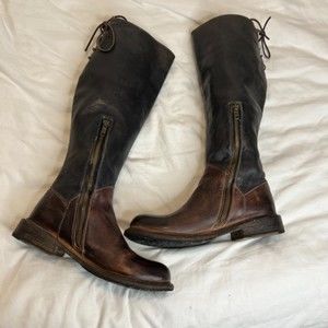 Bed Stu Manchester Leather Riding Boots Lace Up Brown/Black Size 8