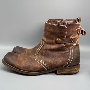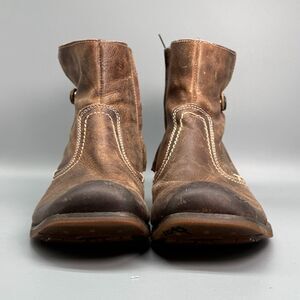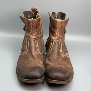 Bed Stu Men's 9 Dark Brown Leather Ankle Boots Side-Zip Snap Button Western