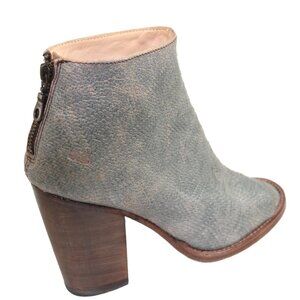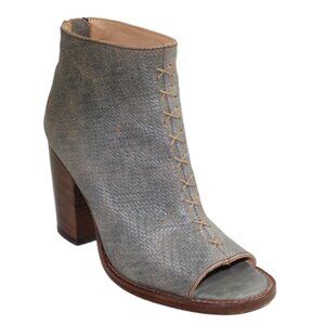Bed Stu Onset Gray Washed Peep Toe Stacked Heel Bootie, 6.5