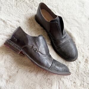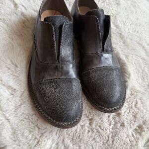 Bed Stu Rose GraphitoDip Dye Handmade Leather Slip on Loafers Gray Textured Full Grain Distressed Leather. No two pairs are the same.