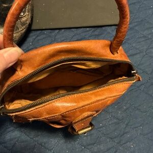 Bed Stu Round bag in a bright tan