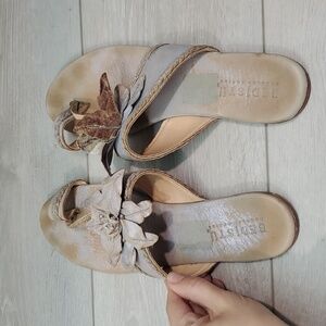 Bed Stu Womens Flower Boho hobo Loop Toe Leather Sandals Flats shoes sz 8